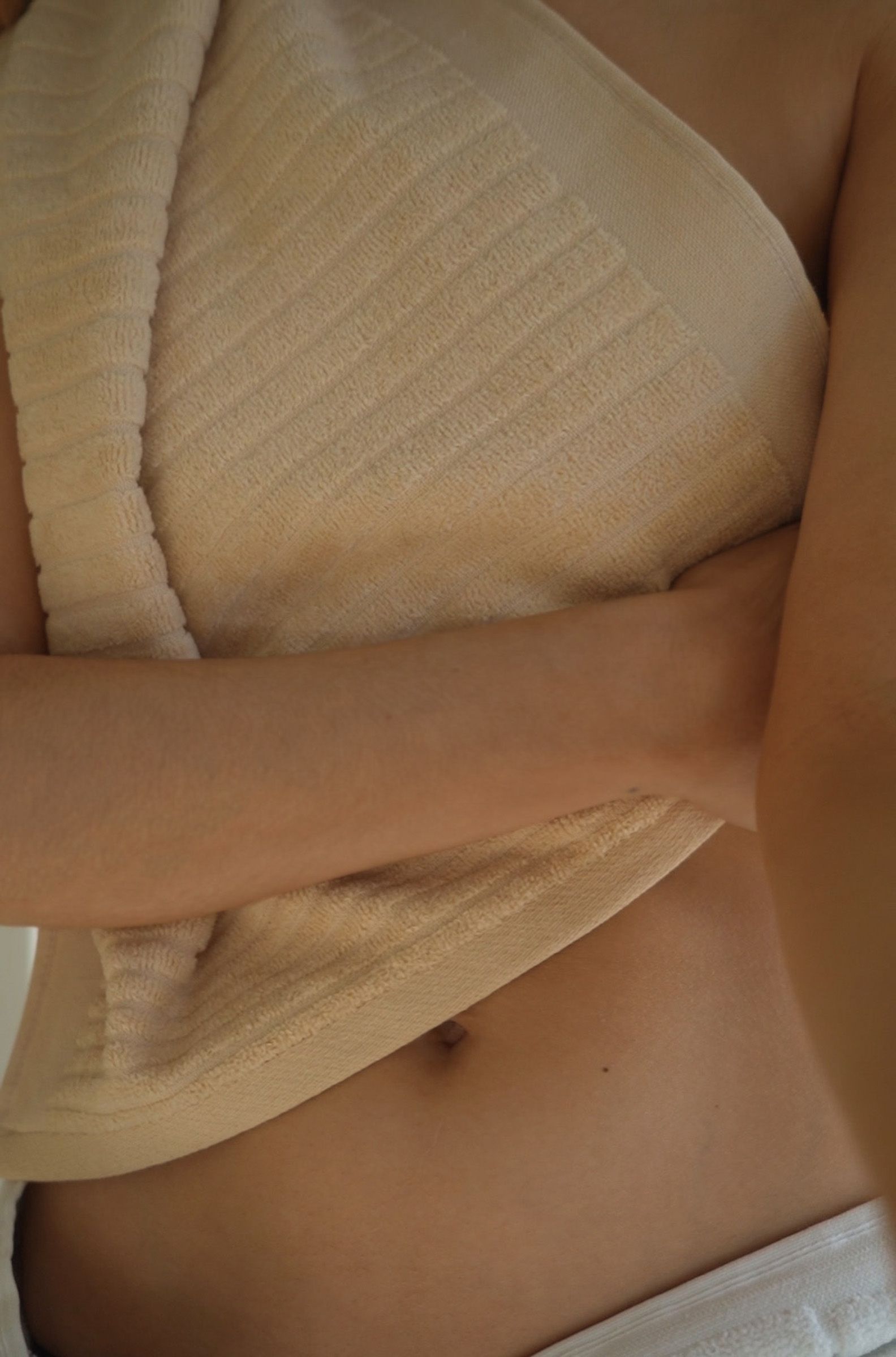 ABOVE: Mel in the Sulis Bath Robe in Ivory post bathe.